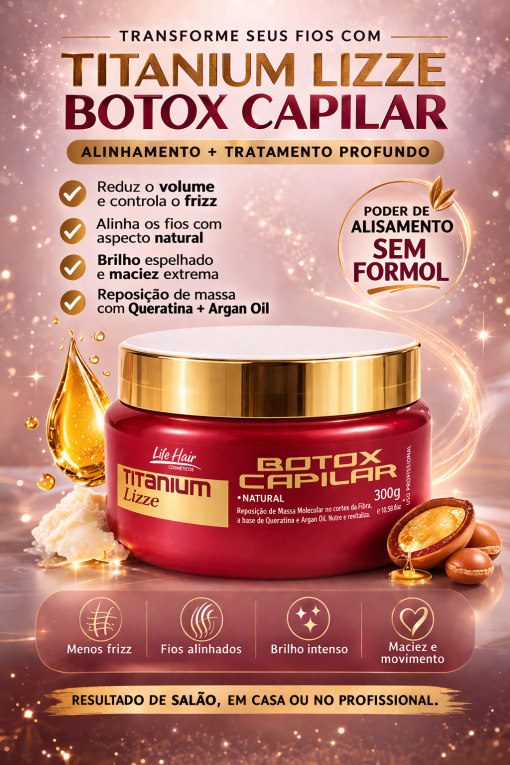 Seja o primeiro a avaliar “Botox Capilar Natural Titanium Lizze Life Hair 300g”