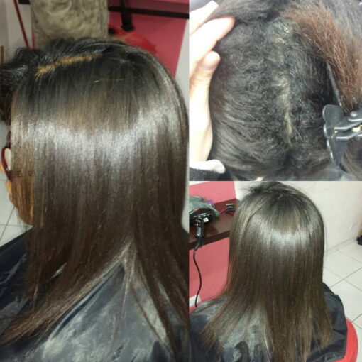 Inicialmente, realize o experimento de mecha conforme descrito nas advertências. Utilize o Protetor antes de começar o procedimento para proteger todo o couro cabeludo e a pele ao redor do cabelo. Adicione em um recipiente duas partes de Base Relaxante e uma parte de Ativador Guanidina misture bem e inicie a aplicação a uma distância de meio centímetro da raiz.