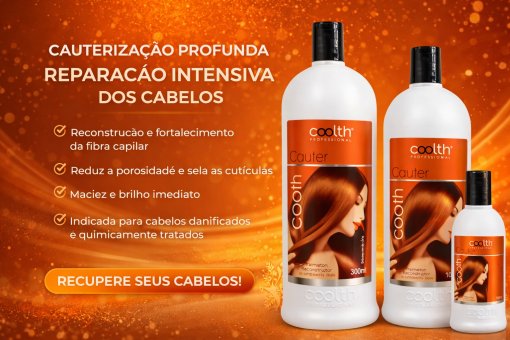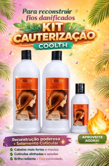 O Kit Cauterização Coolth (Kit Maior) foi desenvolvido para realizar um tratamento completo de reconstrução profunda da fibra capilar, indicado para cabelos danificados, porosos, elásticos ou quimicamente tratados. Sua tecnologia atua na reposição de massa, fortalecimento da estrutura interna do fio e selagem das cutículas, devolvendo resistência, maciez e brilho intenso.