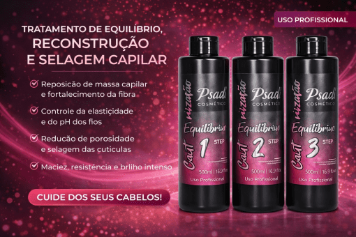 O Kit Cauterização Equilibrium Psiu! 1L foi desenvolvido para promover um tratamento intensivo de reconstrução, equilíbrio e selagem da fibra capilar, ideal para cabelos danificados, porosos, elásticos ou quimicamente tratados. Sua ação profissional atua diretamente na reposição de massa, no controle da elasticidade e na normalização do pH, devolvendo resistência, maciez e brilho intenso aos fios.