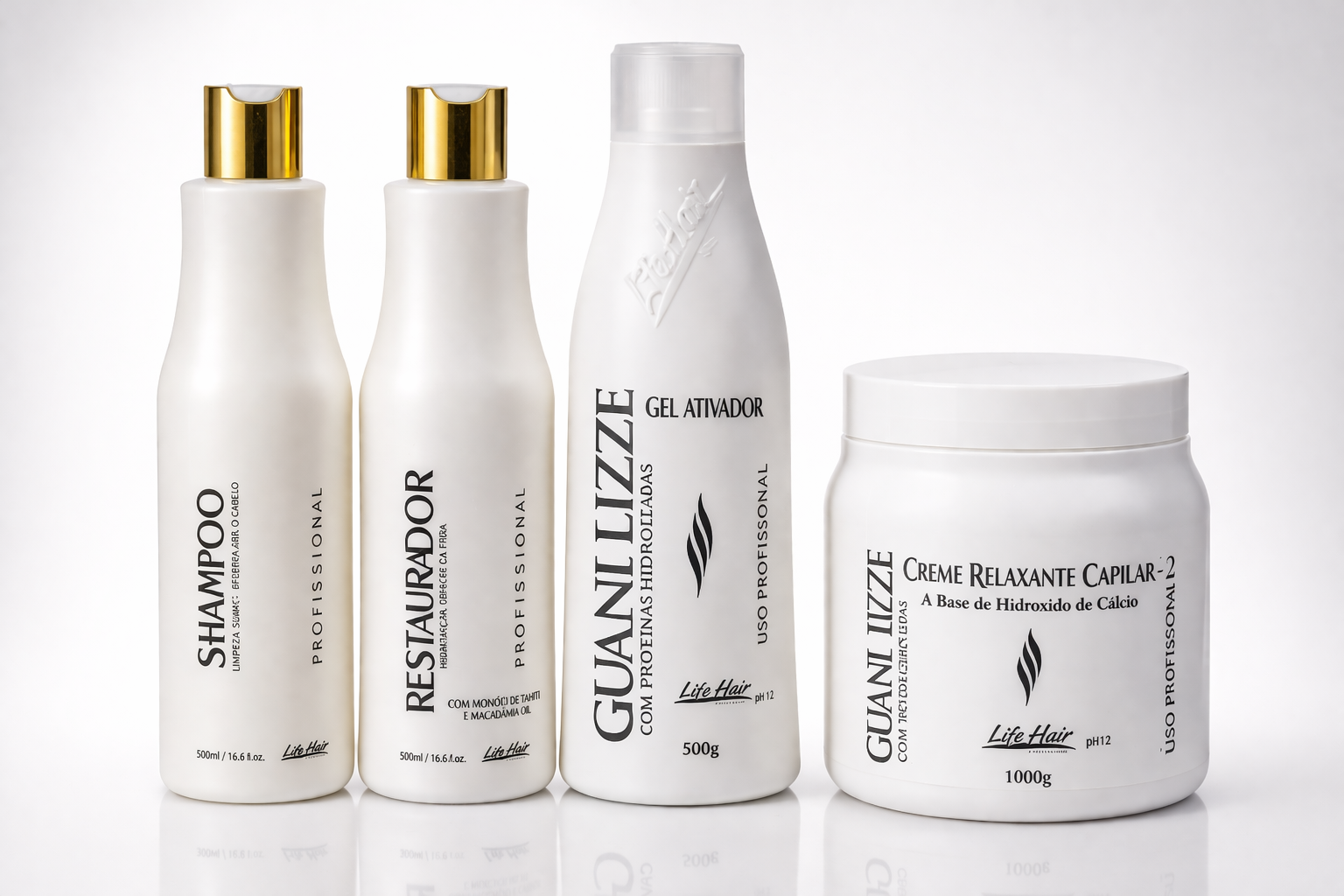 Guanidina: agente alcalino que promove a quebra controlada das ligações internas do fio, permitindo o realinhamento da fibra capilar.