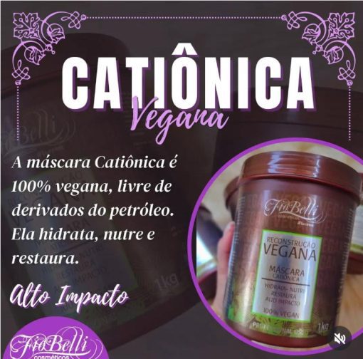 Máscara Catiônica Reconstrução Vegana , um produto novo que hidrata, nutri e restaura ao mesmo tempo, isso mesmo ela é 3 benefícios 1 só produto.