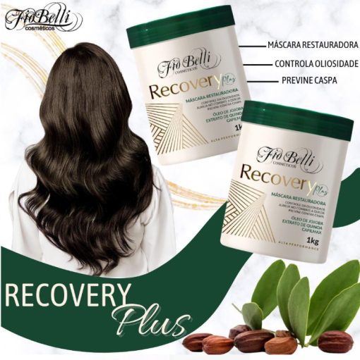 A mascara de tratamento capilar Recovery Plus é enriquecida com: Jojoba, Extrato de Quinoa, Óleo Jojoba, capilmax e romã .
