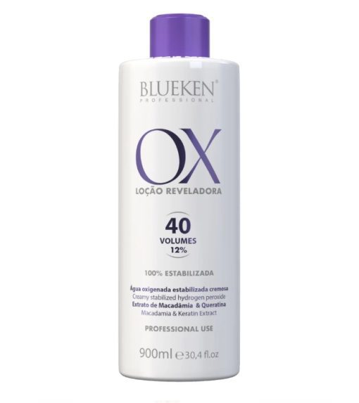 Modo de uso: A Loção Reveladora OX 40vol. Blueken deve ser utilizada em preparação de colorações e descolorações capilares na quantidade indicada no modo de preparo do produto a ser utilizado.