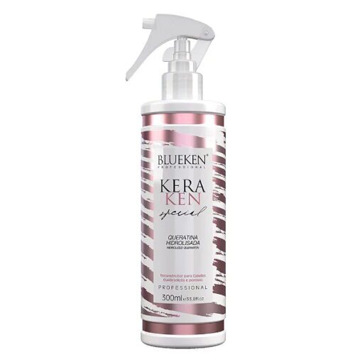 A Queratina Hidrolisada Blueken recupera cabelos danificados e protege a fibra capilar das agressões externas com um resultado imediato. Deixando os cabelos fortes, resistentes e brilhantes. Elimina completamente as pontas duplas e o frizz.
