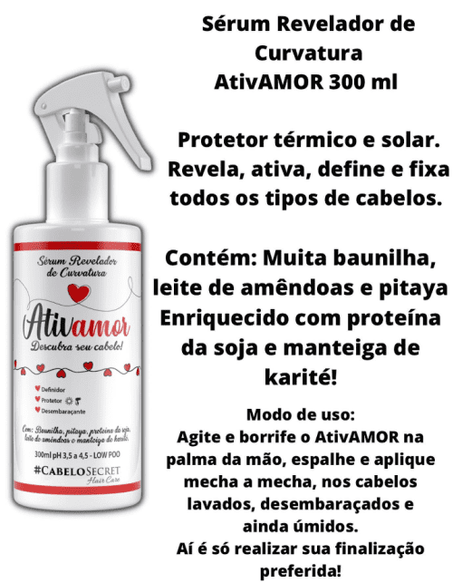 01 Sérum Revelador de Curvatura AtivAmor Cabelo Secret 300ml