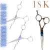 As tesouras 18K foram desenvolvidas por profissionais com o objetivo de atender as necessidades dos cabeleireiros mais exigentes. Os modelos Fio Laser são produzidas em Aço inoxidável Japonês. Um lado possui afiação a laser (micro-serrilhada) e o outro fio navalha liso, fazendo com que o corte seja mais seguro.